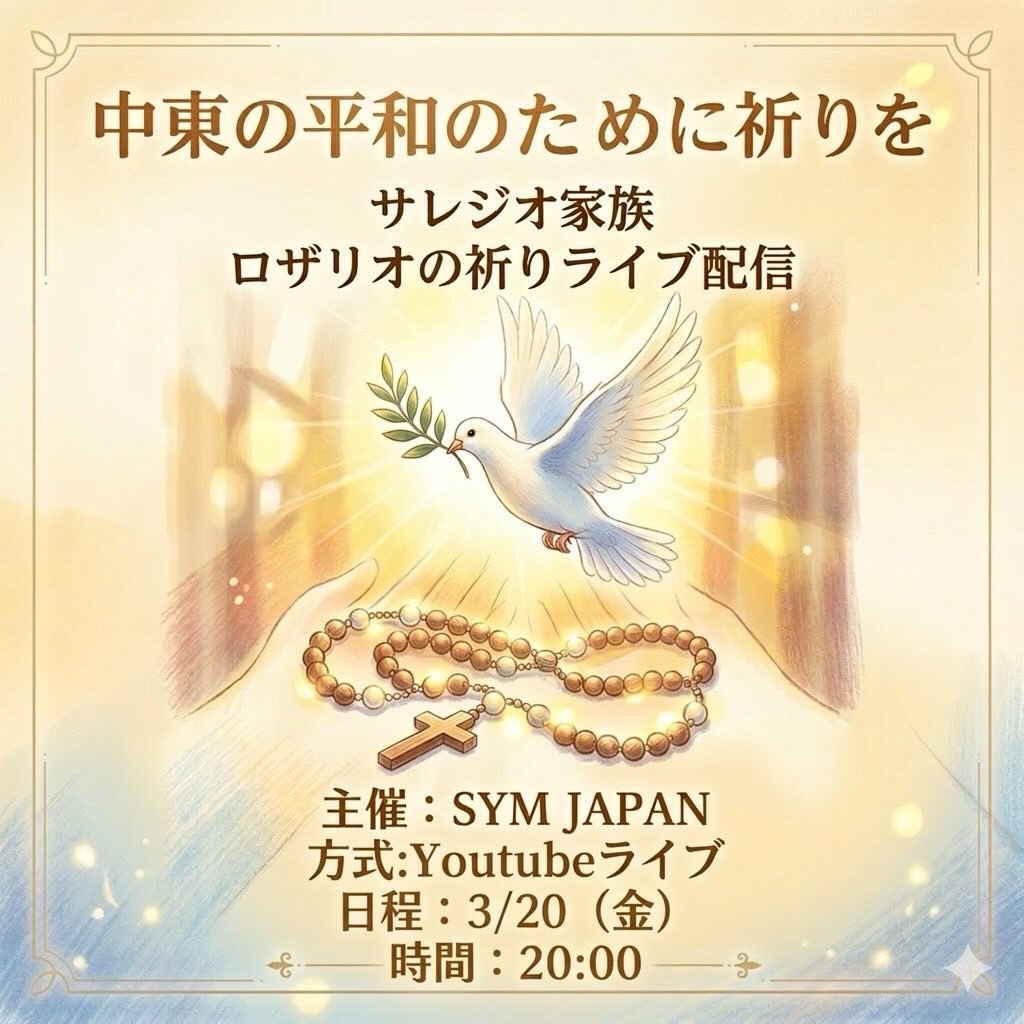 SYM JAPAN サレジオ家族 中東の平和のためのロザリオ ライブ配信のお知らせ
